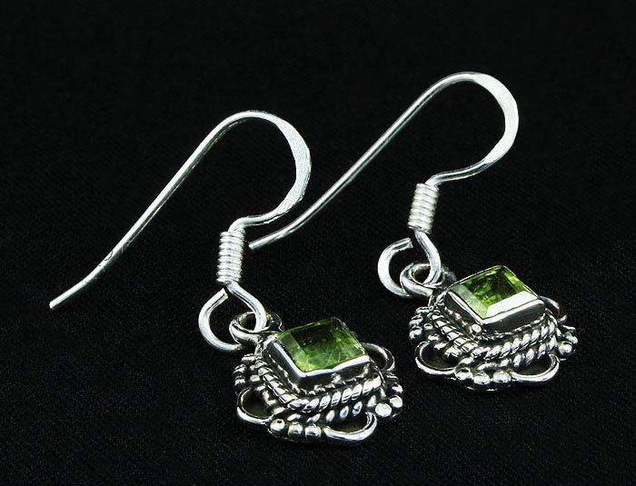 0.80CT Peridot Antique Design .925 HookEarring 2.85g **|**|** 1.09" Long Sterling Silver Dangling Hook Earring with a Peridot Faceted Gem Measuring 4x4mm Square ; MSRP: $300