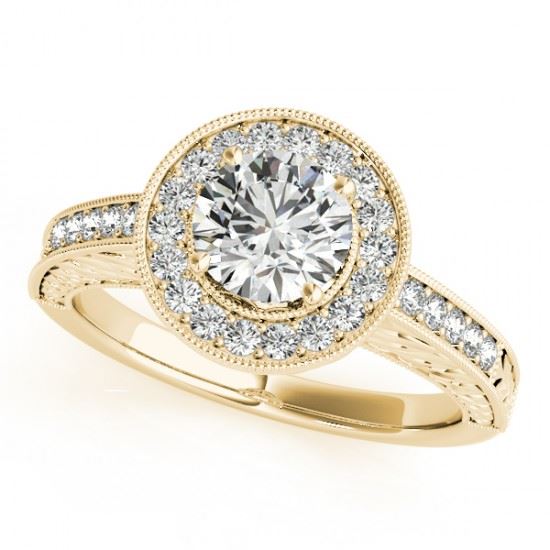0.81 CTW Certified VS/SI Diamond Solitaire Halo Ring 18K Yellow Gold ---- Luxury Designer Brand Ring Appraised Retail Price at $5,300 ---- SKU Number US26520 18k Yellow gold Ring Size is 7, Ring measuring approx. Uniform, weighing in total approx. 3.3 grams. Made in the USA and is stamped 18k, Main stone 0.50 carat total weight containing 1 pieces of H-J color with VS/SI quality Round shape cut Diamond , Stone #2 0.31 carat total weight containing 27 pieces of H-I color with VS/SI quality Round shape cut