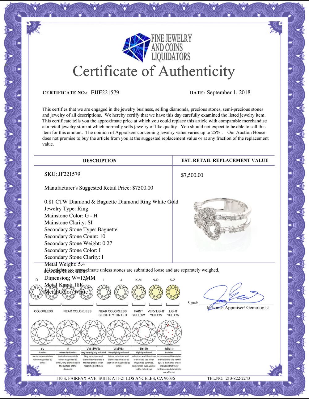 All Gia and EGL Diamonds are subject to availability due to consignors’ terms with us.