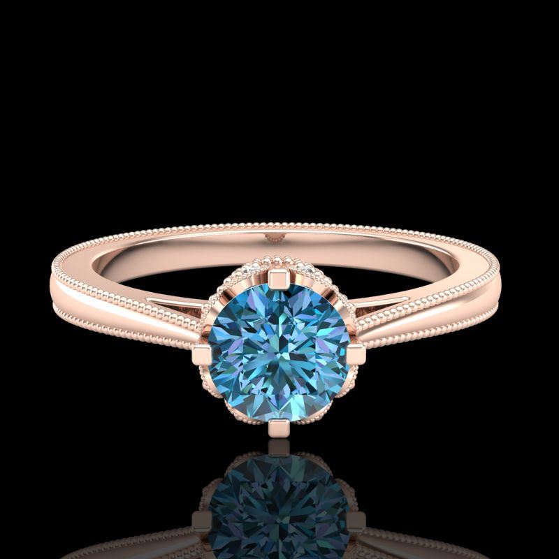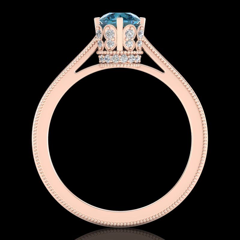 REF-103Y6K -37335 ---- 0.81 CTW Fancy Intense Blue Diamond Solitaire Art Deco Ring 18K Rose Gold ---- Luxury Designer Brand Ring Appraised at $6,850 Certificate Number US37335 18k Rose gold, Ring Size is 7, Ring measuring approx. Uniform, weighing in total approx. 4.2 grams. Made in the USA and is stamped 18k, Main stone 0.53 carat total weight containing 1 pieces of Intense Fancy Blue color with SI quality Round shape cut Diamond , Stone #2 0.28 carat total weight containing 30 pieces of H-I color with VS/SI quality Round shape cut Diamond