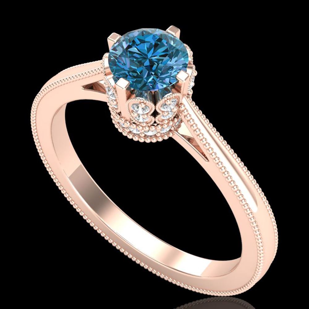 SKU: 37335 ---- 0.81 ctw Fancy Intense Blue Diamond Art Deco Ring 18k Rose Gold