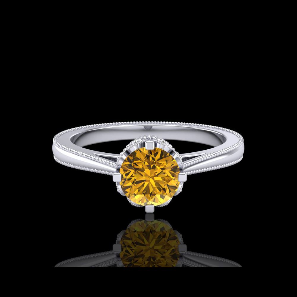0.81 ctw Intense Fancy Yellow Diamond Art Deco Ring 18K White Gold