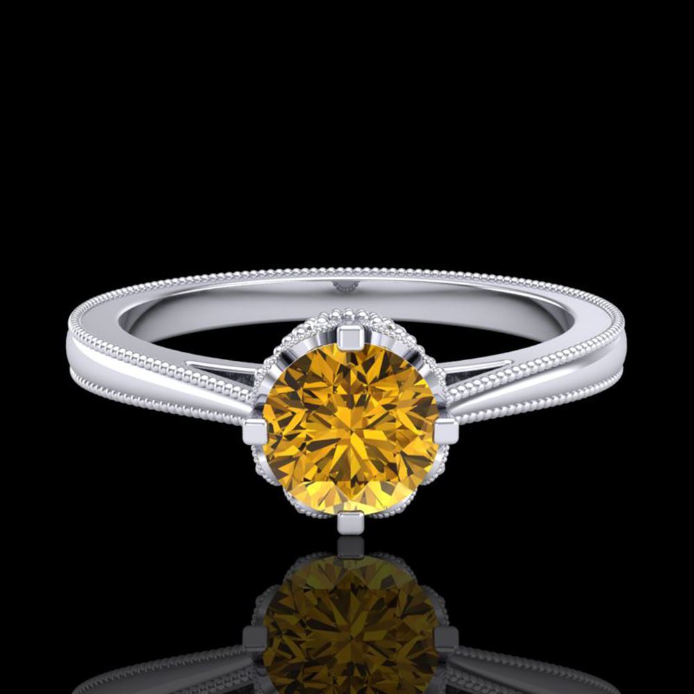 REF-127H3R - SKU: 37336 ---- 0.81 ctw Intense Fancy Yellow Diamond Art Deco Ring 18k White Gold
