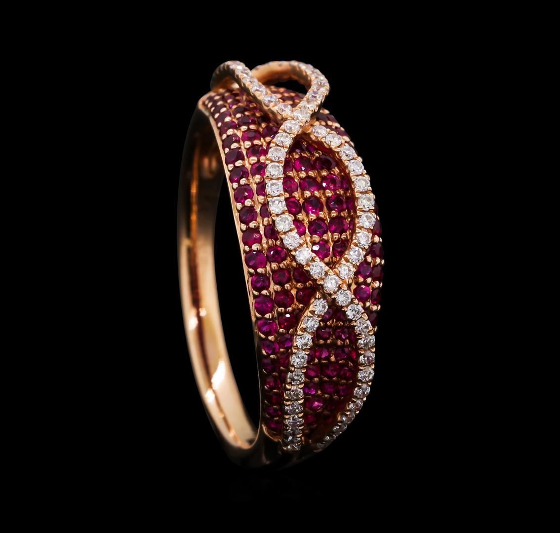 One ring featuring: 14KT rose gold weighing 2.0 grams containing rubies weighing 0.81ctw and diamonds weighing 0.22ctw.
