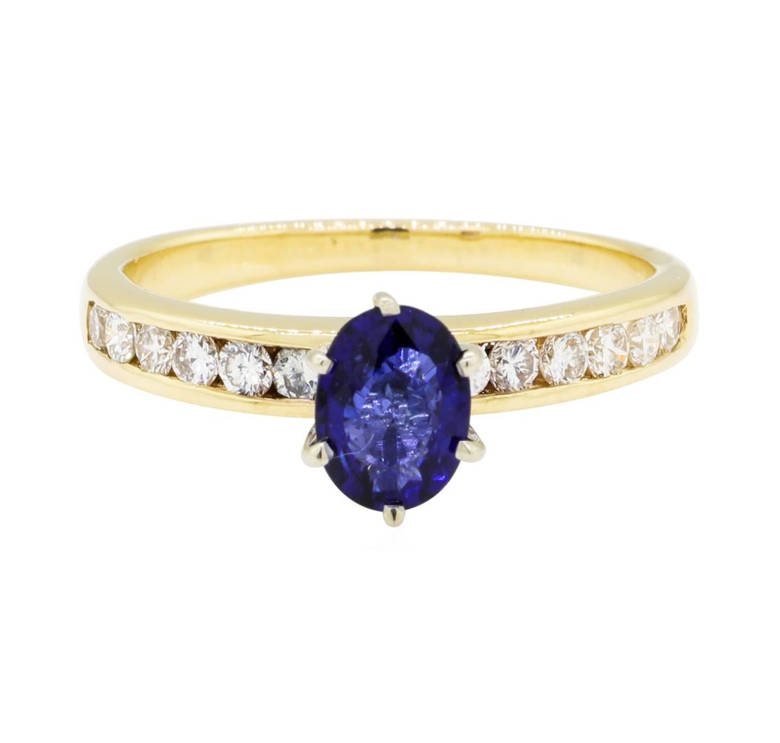 One lady's ring featuring: 14KT yellow gold weighing 3.3 grams containing one sapphire weighing 0.81ct and diamonds weighing 0.30ctw.