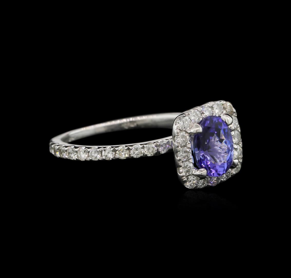 One ring featuring: 14KT white gold weighing 2.02 grams containing one prong set oval shape tanzanite center stone with a total weight of 0.81ct and prong set round diamonds with a total weight of 0.50ct.