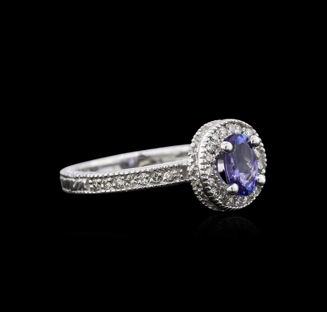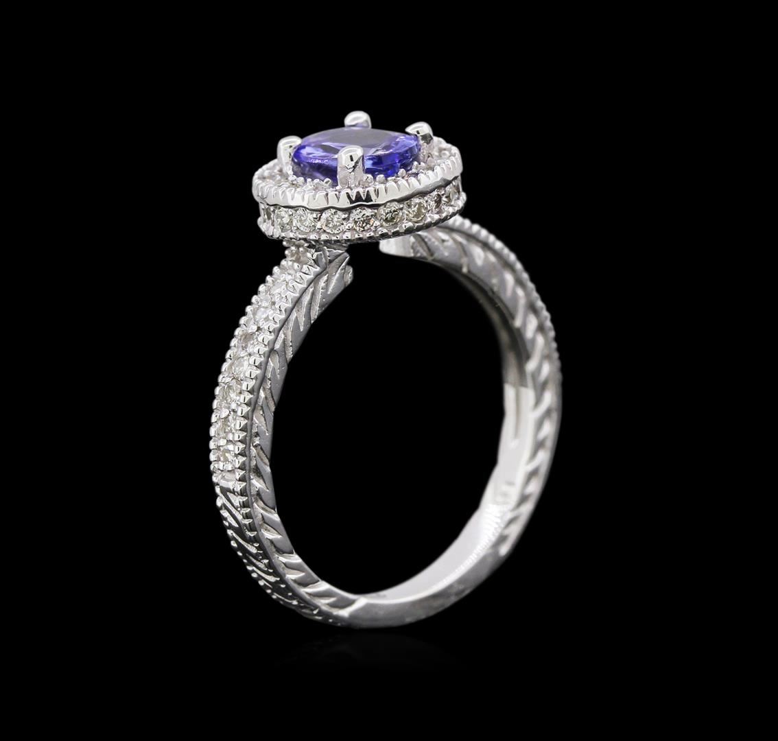 One ring featuring: 14KT white gold weighing 4.76 grams containing one tanzanite center stone with a total weight of 0.81ct and diamonds with a total weight of 0.25ct.