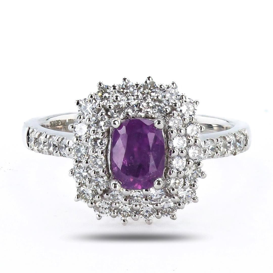 0.81 ctw UNHEATED Purple Pink KASHMIR Sapphire and 0.88 ctw Diamond Platinum Rin