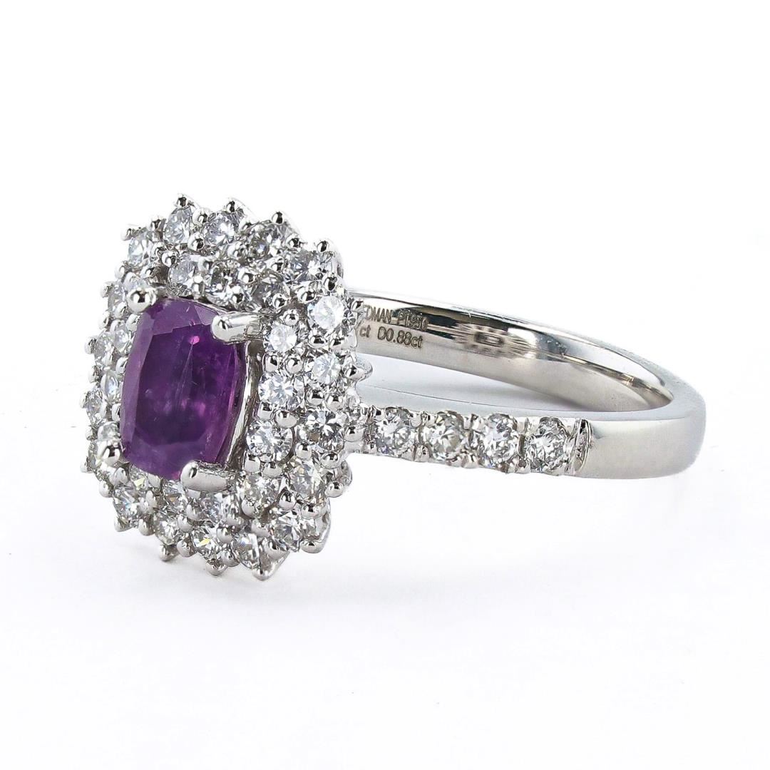 0.81 ctw UNHEATED Purple Pink KASHMIR Sapphire and 0.88 ctw Diamond Platinum Rin