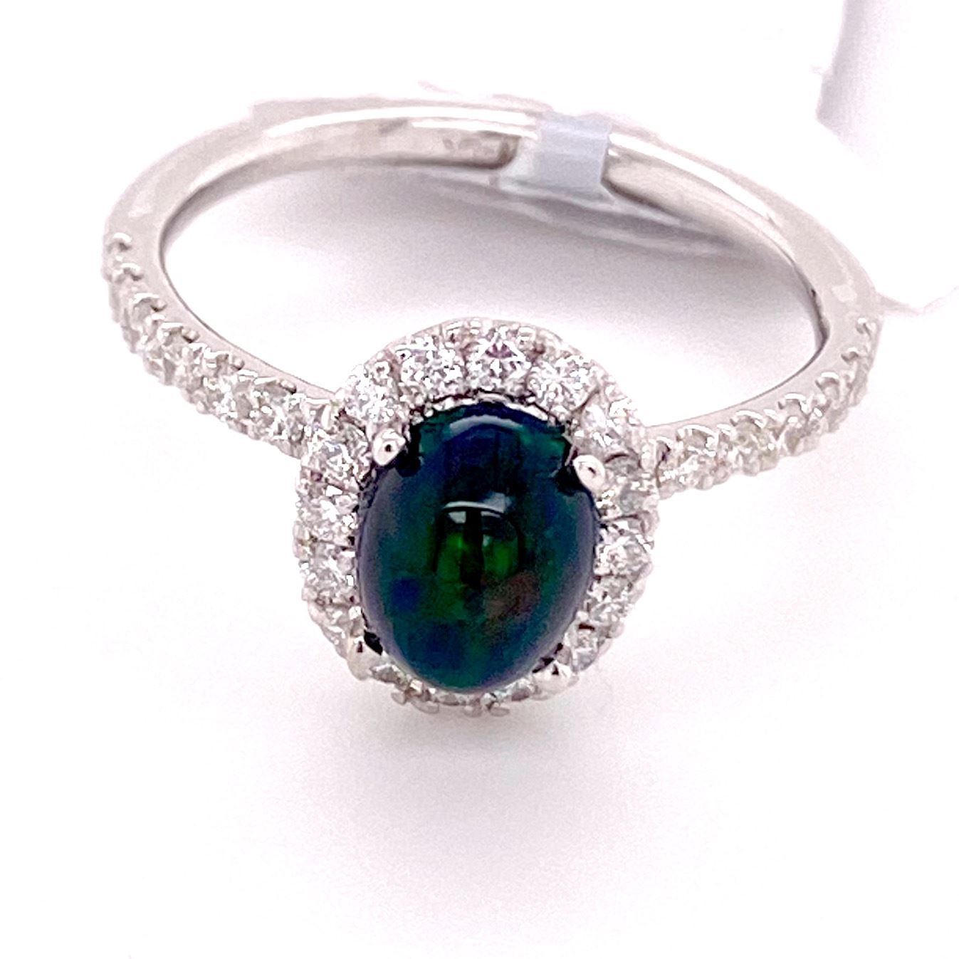0.81ct Natural OPAL 14K White Gold 2.7gm Diamond 0.49ct Ring #PJ4650