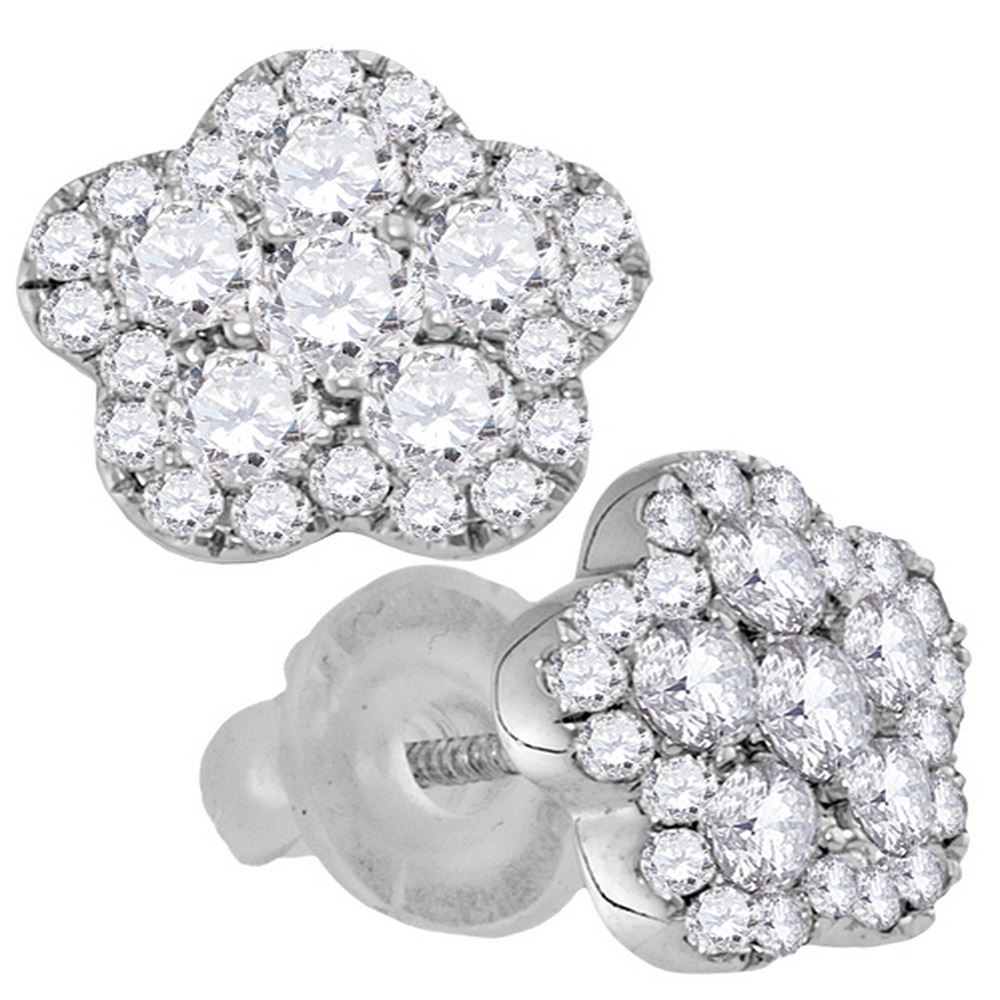 REF-75N2F- SKU: GD115445 ---- 0.82 CTW Diamond Star Cluster Screwback Earrings 14KT White Gold