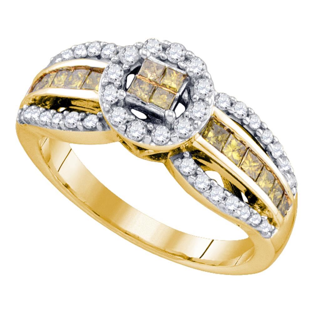 REF-63W2K- SKU: GD74375 ---- 0.82 CTW Princess Yellow Color Diamond Cluster Ring 14KT Yellow Gold