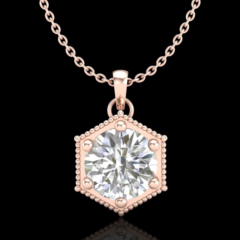 0.82 CTW VS/SI Diamond Solitaire Art Deco Stud Necklace 18K Rose Gold ---- Luxury Designer Brand NECKLACE Appraised Retail Price at $12,000 ---- SKU Number US37221 18k Rose gold NECKLACE Size is 16 Inches, NECKLACE measuring approx. Uniform, weighing in total approx. 4.3 grams. Made in the USA and is stamped 18k, Main stone 0.82 carat total weight containing 1 pieces of H-J color with VS/SI quality Round shape cut Diamond , Stone #2 carat total weight containing pieces of color with quality shape cut