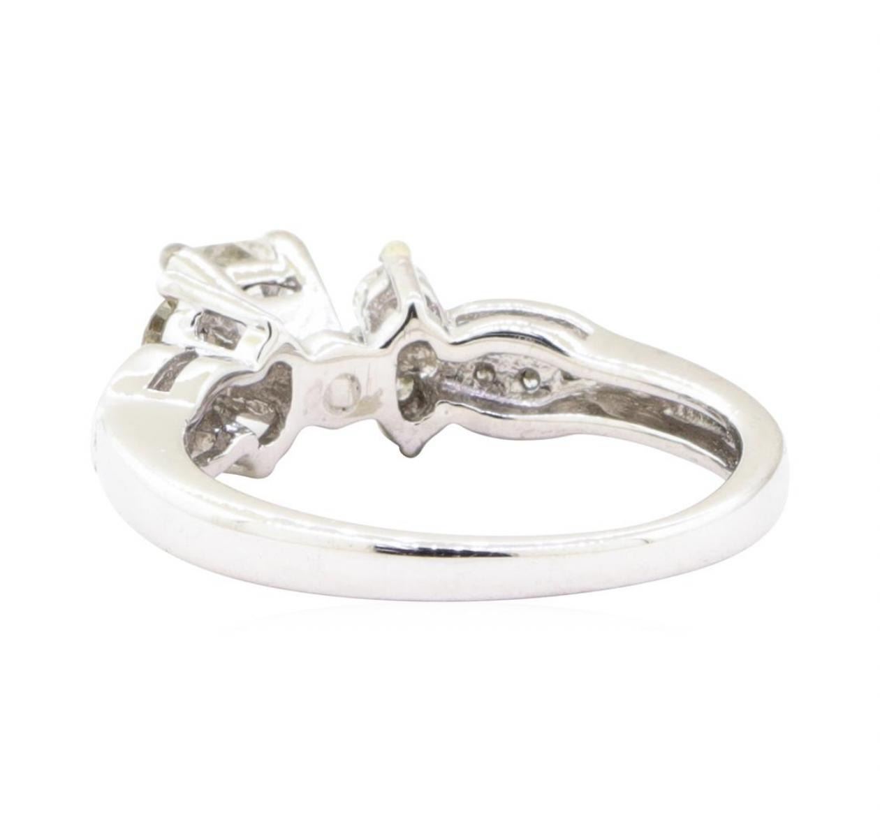 One electronically tested 14KT white gold lady's combination cast & assembled wedding ring with a straight line scalloped edge motif with a bright polish with milgrain detailing finish. The featured lady's ring has a shank measuring 1.90 millimeters wide. Identified with markings of '14K'. Condition is Good. Containing: One prong set princess cut diamond, measuring 4.30 x 3.95 x 3.00mm (depth est.) approximate weight of 0.42ct. Graded in the setting. Color H - I Clarity SI-2 Cut Good Four prong set round brilliant cut diamonds, measuring 2.65 - 2.60 x 1.58mm (depth est.) approximate total weight of 4 Stones = 0.28ct. Graded in the setting. Color H - J Clarity VS-2 to SI-1 Cut Good Ten prong set round brilliant cut diamonds, measuring 1.50 - 1.45 x 0.92mm (depth est.) approximate total weight of 10 Stones = 0.12ct. Graded in the setting. Color H - I Clarity SI-1 to SI-2 Cut Good. Total Weight of Diamonds 0.82ct.. Total Weight of Ring 3.60gm GAS Appraised at $2900.00. GAS Appraised.