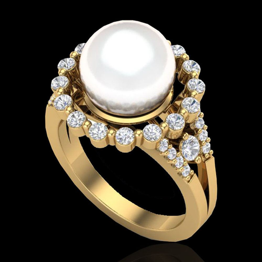 REF-84X5A - SKU: 20707 ---- 0.83 CT Micro Pave VS/SI Diamond Certified & Pearl Ring 18k Yellow Gold