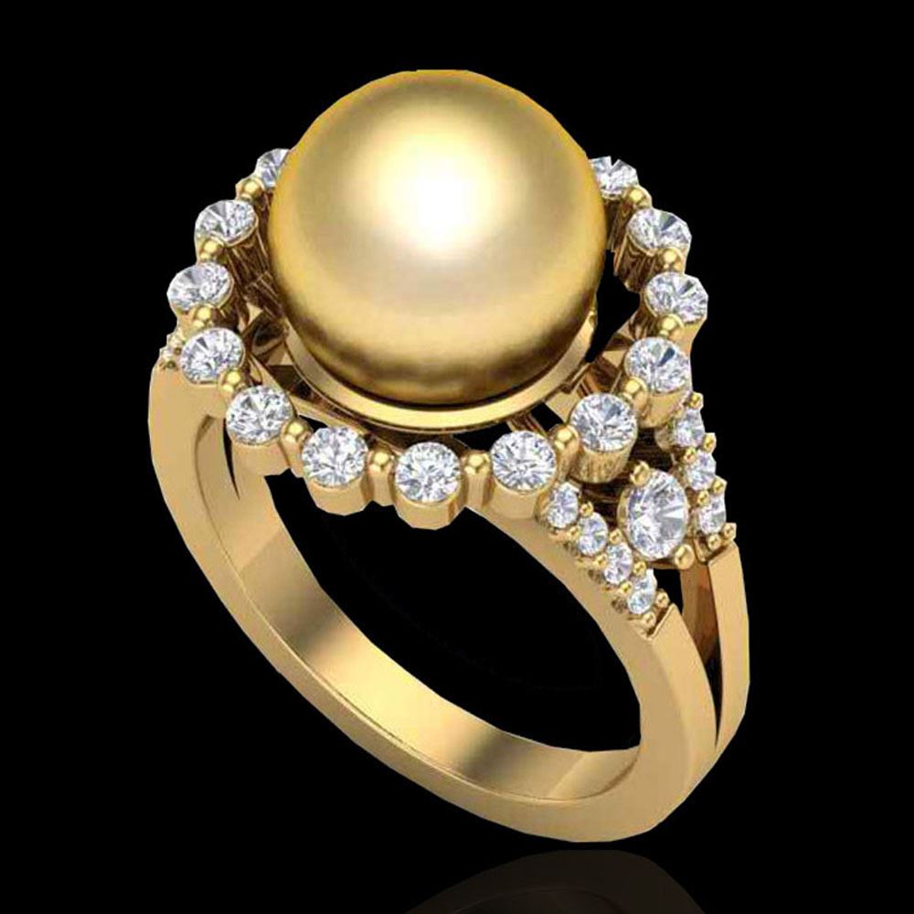 REF-85W5H - SKU: 20703 ---- 0.83 CT Micro Pave VS/SI Diamond & Golden Pearl Ring 18k Yellow Gold