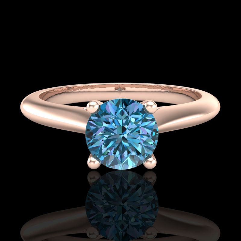 REF-87T3M -38196 ---- 0.83 CTW Fancy Intense Blue Diamond Solitaire Art Deco Ring 18K Rose Gold ---- Luxury Designer Brand Ring Appraised at $5,750 Certificate Number US38196 18k Rose gold, Ring Size is 7, Ring measuring approx. Uniform, weighing in total approx. 2.6 grams. Made in the USA and is stamped 18k, Main stone 0.75 carat total weight containing 1 pieces of Intense Fancy Blue color with SI quality Round shape cut Diamond , Stone #2 0.08 carat total weight containing 2 pieces of H-I color with VS/SI quality Round shape cut Diamond