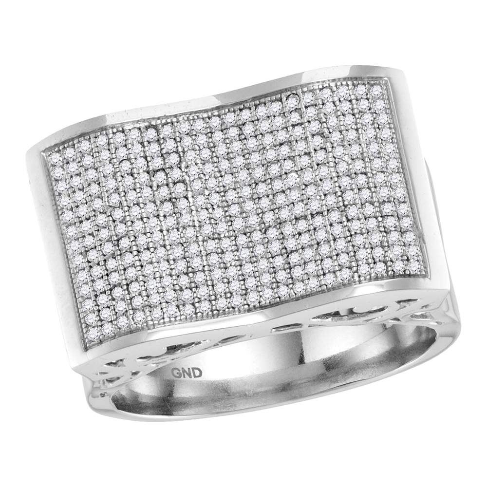 REF-71Y9X- SKU: GD57810 ---- 0.83 CTW Mens Pave-set Diamond Rectangle Concave Cluster Ring 10KT White Gold
