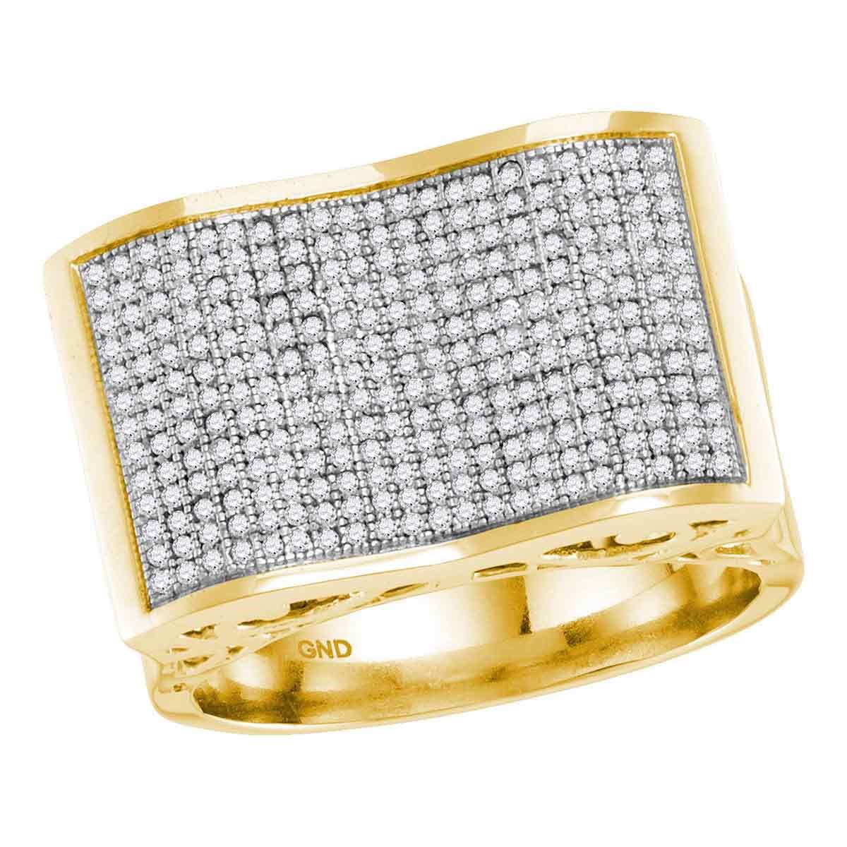 REF-71N9F- SKU: GD58448 ---- 0.83 CTW Mens Pave-set Diamond Rectangle Concave Cluster Ring 10KT Yellow Gold
