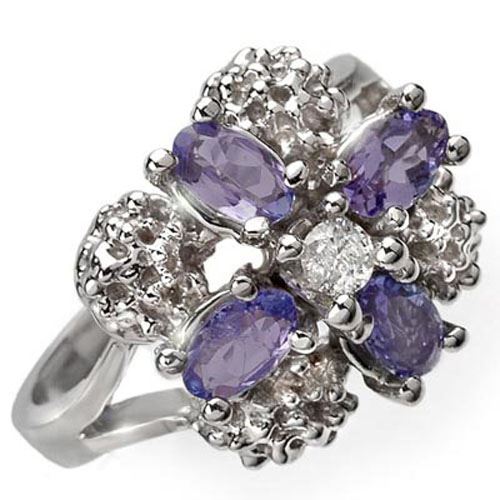 REF-44Y2K -10825 ---- 0.83 CTW Tanzanite & Diamond Ring 14K White Gold ---- Luxury Designer Brand Ring Appraised at $3,150 Certificate Number US10825 14k White gold, Ring Size is 6, Ring measuring approx. 1/2" x 1/2" , weighing in total approx. 5.6745 grams. Made in the USA and is stamped 14k, Main stone 0.75 carat total weight containing 4 pieces of Intense Violet Blue color with AAA quality Oval shape cut Tanzanite , Stone #2 0.08 carat total weight containing 1 pieces of H-I color with VS/SI quality Round shape cut Diamond