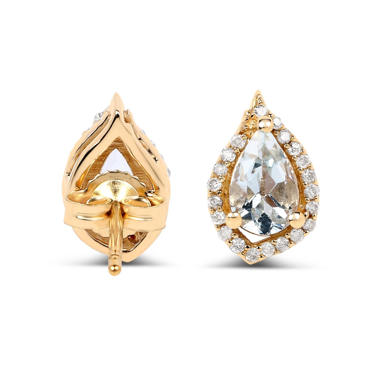 REF-35Y2N ---- 0.83 ctw Aquamarine & White Diamond Earrings 14K Yellow Gold