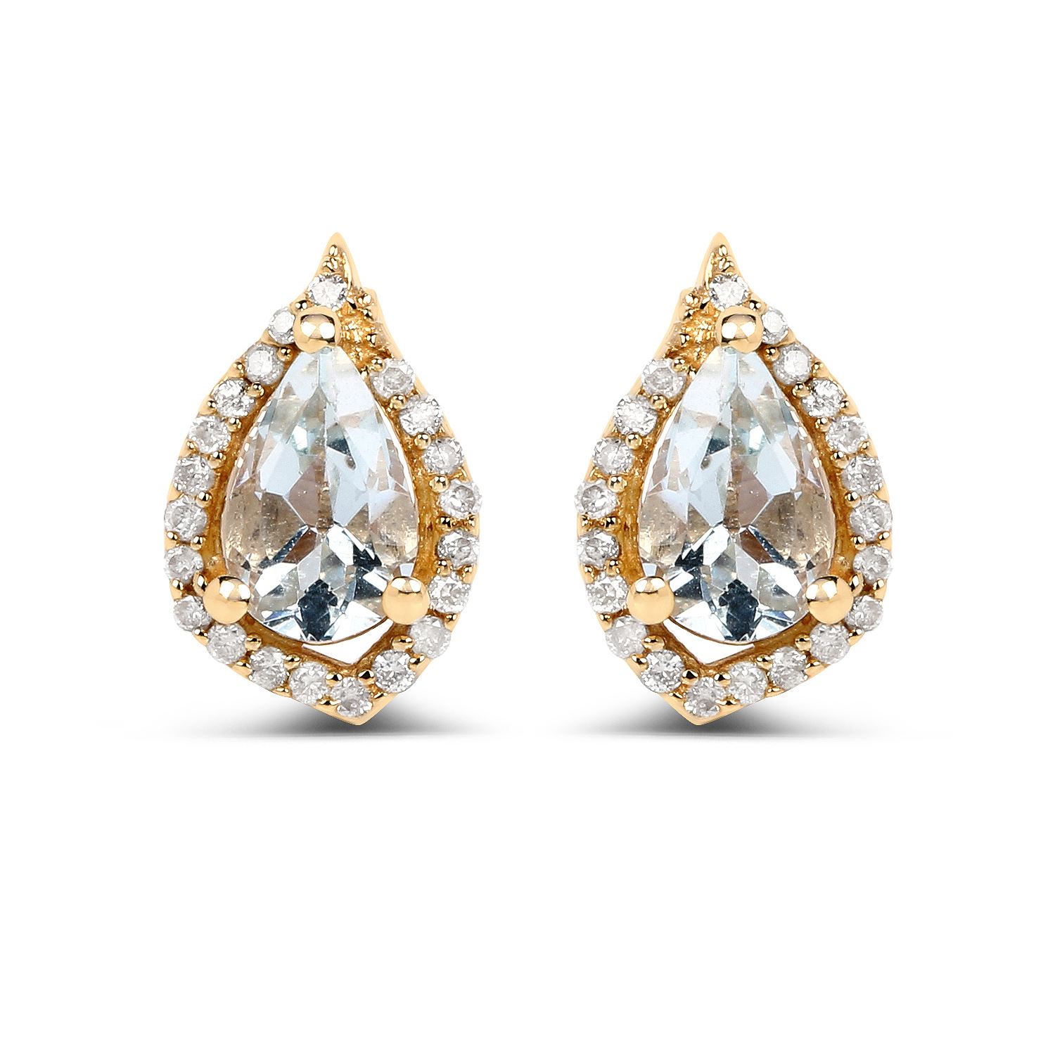 REF-35Y2N ---- 0.83 ctw Aquamarine & White Diamond Earrings 14K Yellow Gold