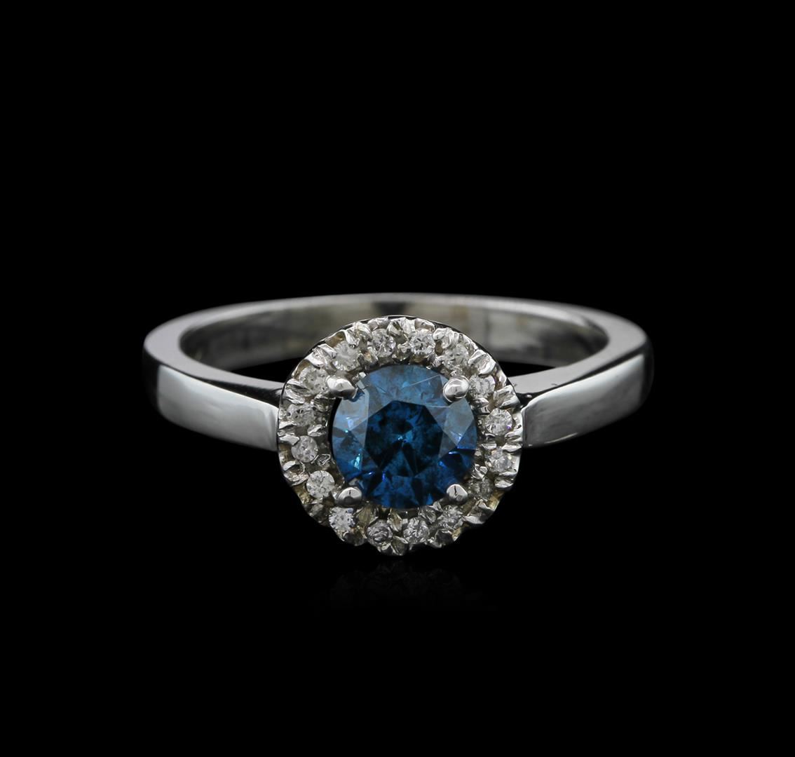 One ring featuring: 14KT white gold weighing 3.55 grams containing one blue diamond center stone with a total weight of 0.73ct and 16 diamond side stones with a total weight of 0.10ct.
