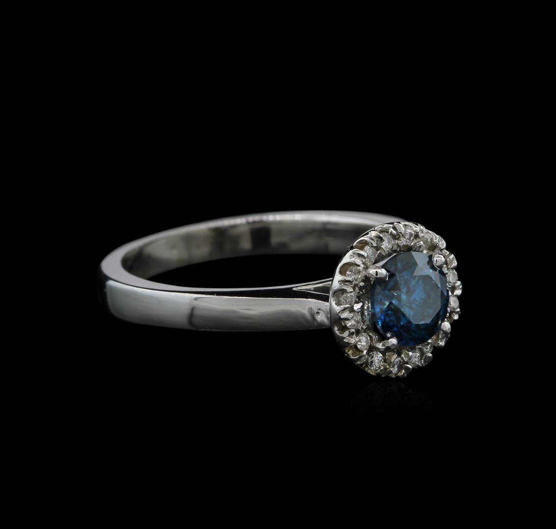 One ring featuring: 14KT white gold weighing 3.55 grams containing one blue diamond center stone with a total weight of 0.73ct and 16 diamond side stones with a total weight of 0.10ct.