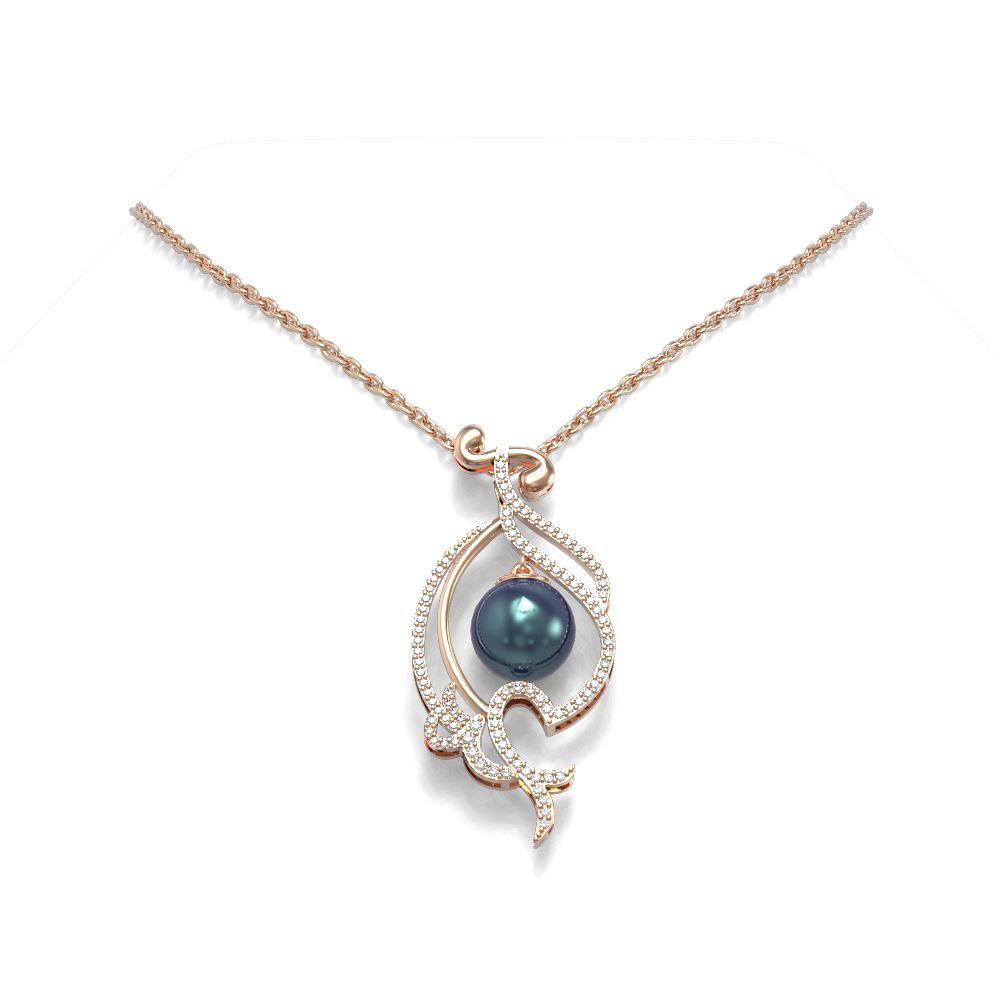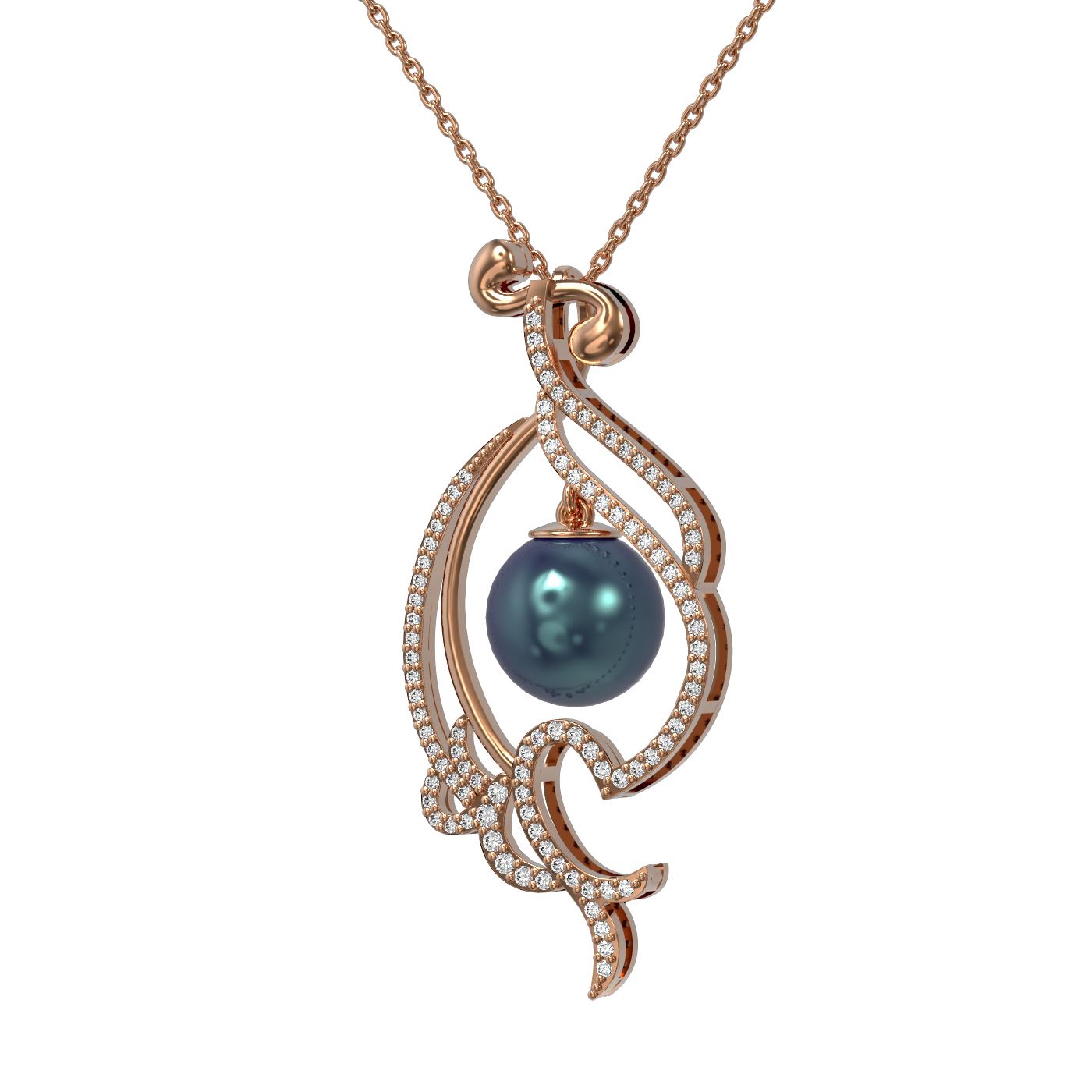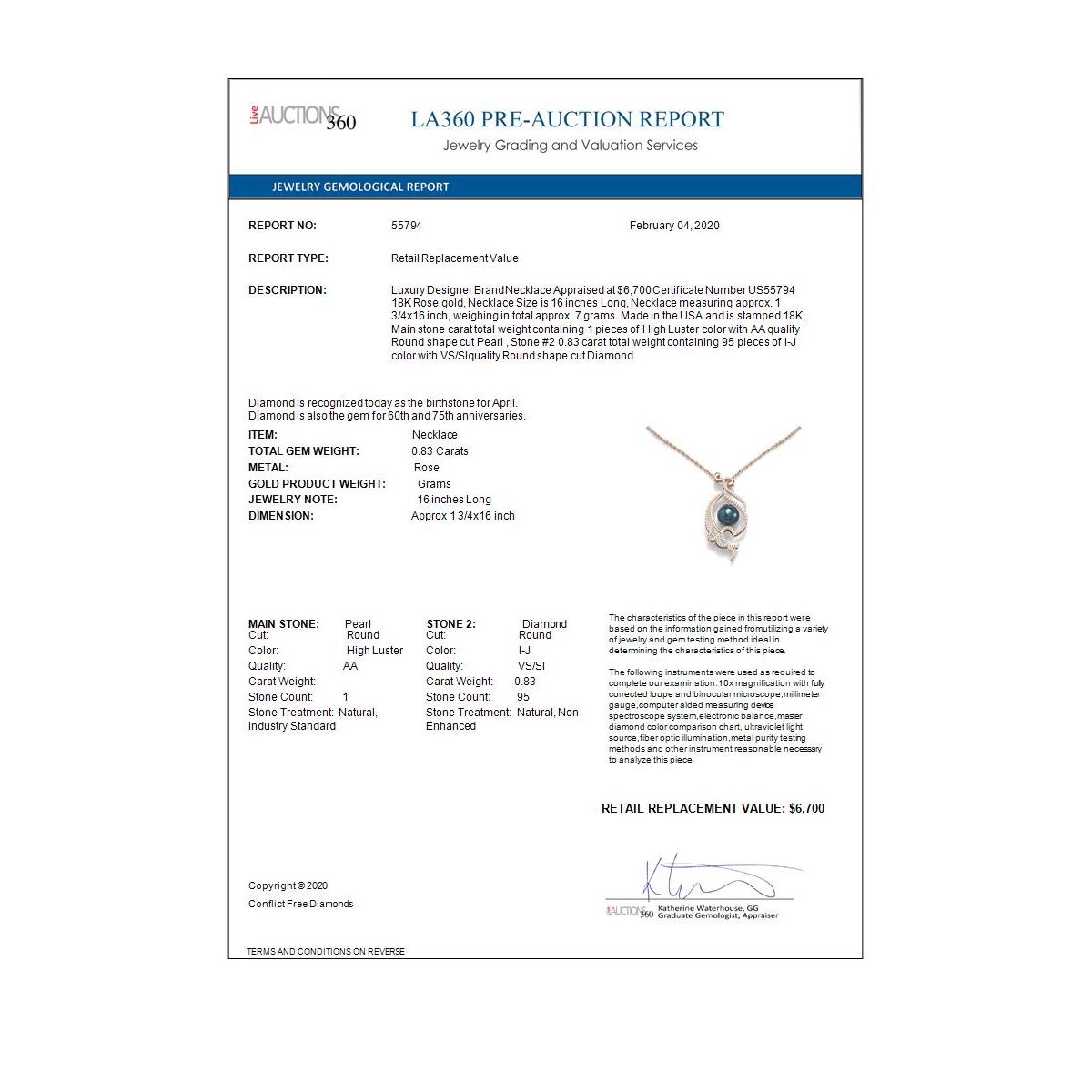 REF-135R5K - SKU: 55794 ---- 0.83 ctw Diamond & Pearl Necklace 18K Rose Gold