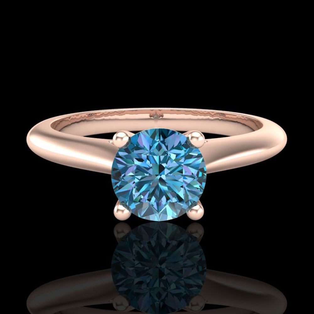 SKU: 38196 ---- 0.83 ctw Fancy Intense Blue Diamond Art Deco Ring 18k Rose Gold
