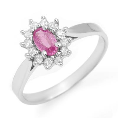 Vintage Style 0.83 ctw Pink Sapphire & Diamond Ring in 14KT White Gold Gemstone: 1 Oval Pink Sapphire 0.58 ctw Diamond: 12 Round Cut 0.25 ctw Clarity: SI-I Color: G-I Gold: Approximately 2.8 grams Size: 6.0 Item #: 1059A4PSAP-W Retail Value: $2,160.00