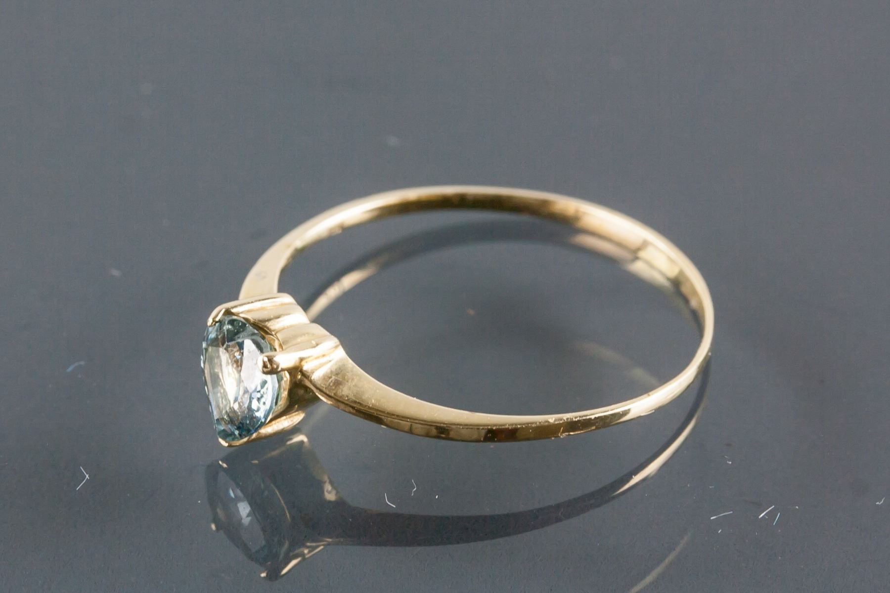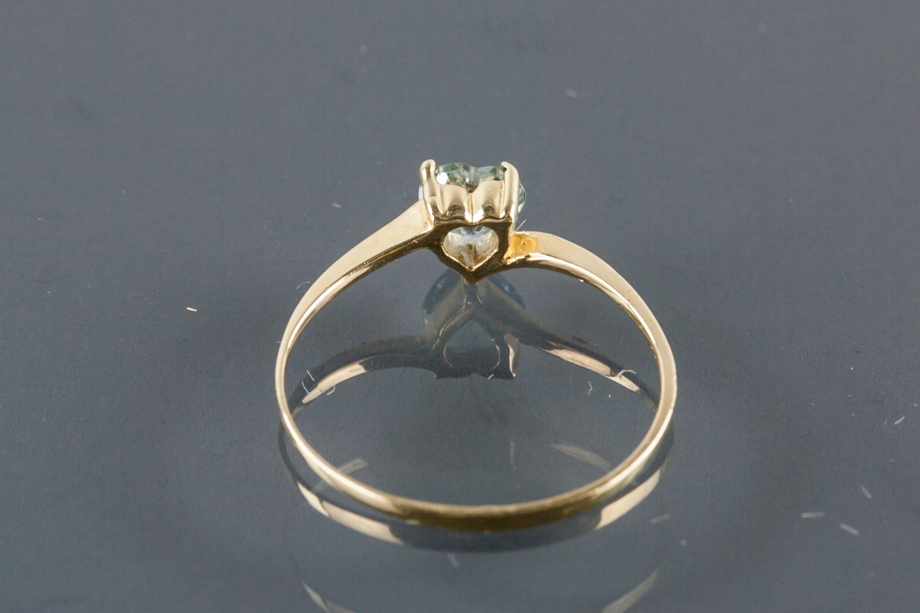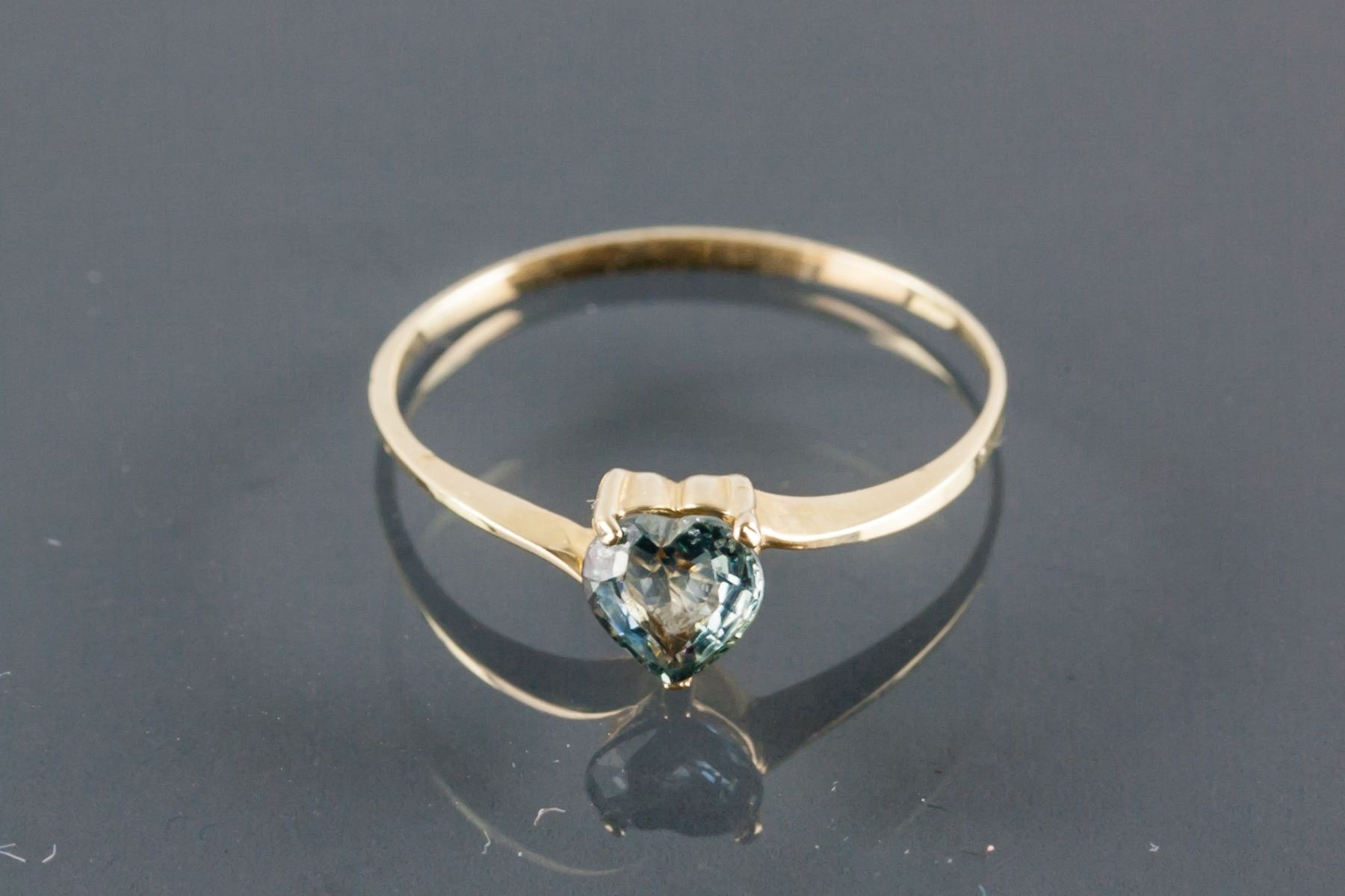 Stamped 10k yellow gold ring; set with heart shaped sapphire; retail value $400