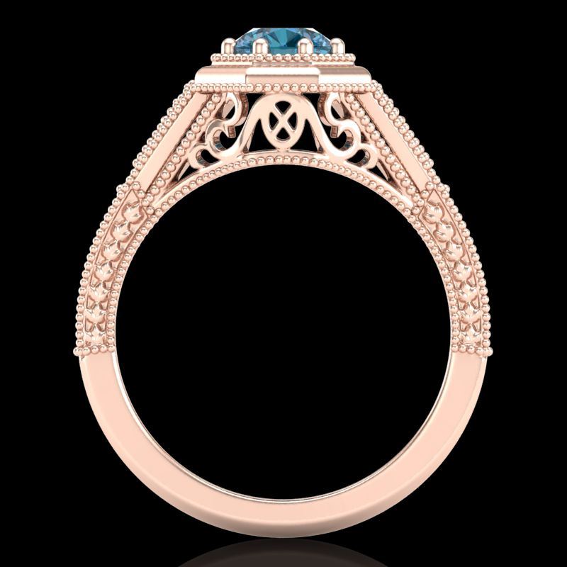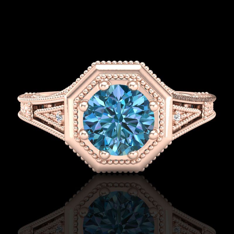 0.84 CTW Fancy Intense Blue Diamond Solitaire Art Deco Ring 18K Rose Gold ---- Luxury Designer Brand Ring Appraised Retail Price at $9,800 ---- SKU Number US37930 18k Rose gold Ring Size is 7, Ring measuring approx. Uniform, weighing in total approx. 8.5 grams. Made in the USA and is stamped 18k, Main stone 0.82 carat total weight containing 1 pieces of Intense Fancy Blue color with SI quality Round shape cut Diamond , Stone #2 0.02 carat total weight containing 2 pieces of H-I color with VS/SI quality Round shape cut