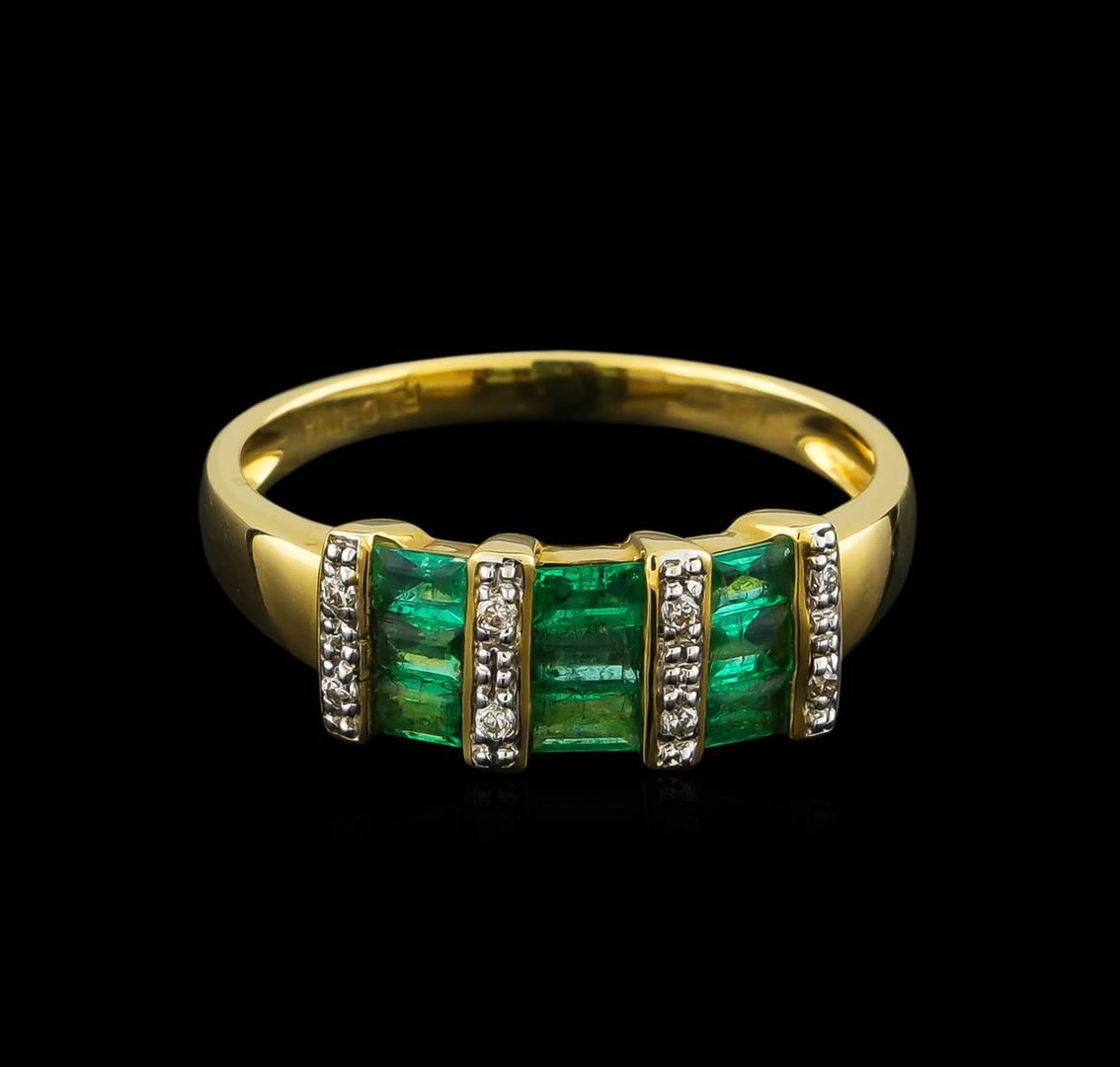 One ring featuring: 14KT yellow gold weighing 2.41 grams containing nine emeralds with a total weight of 0.84ct and eight round diamonds with a total weight of 0.06ct.