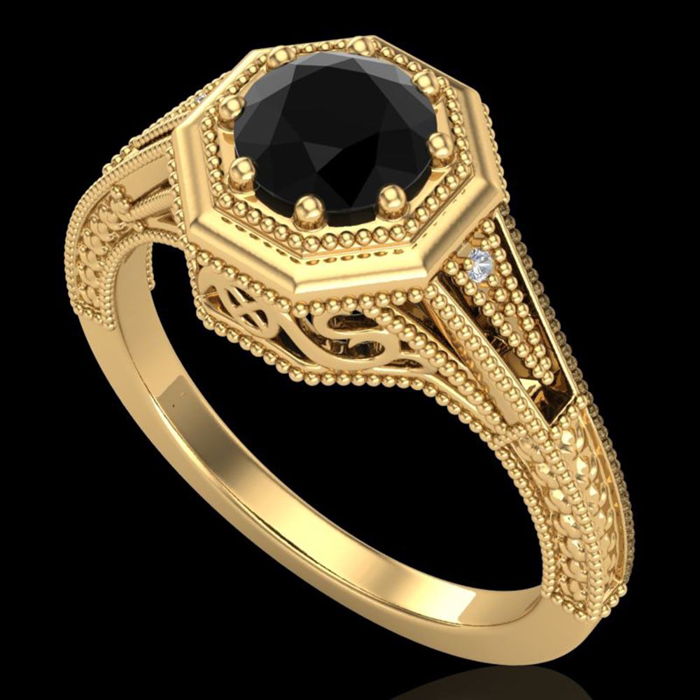 REF-89X3A - SKU: 37928 ---- 0.84 ctw Fancy Black Diamond Engagment Art Deco Ring 18k Yellow Gold