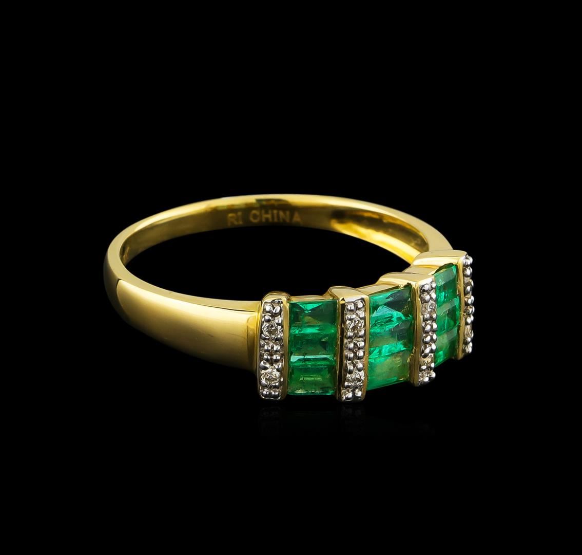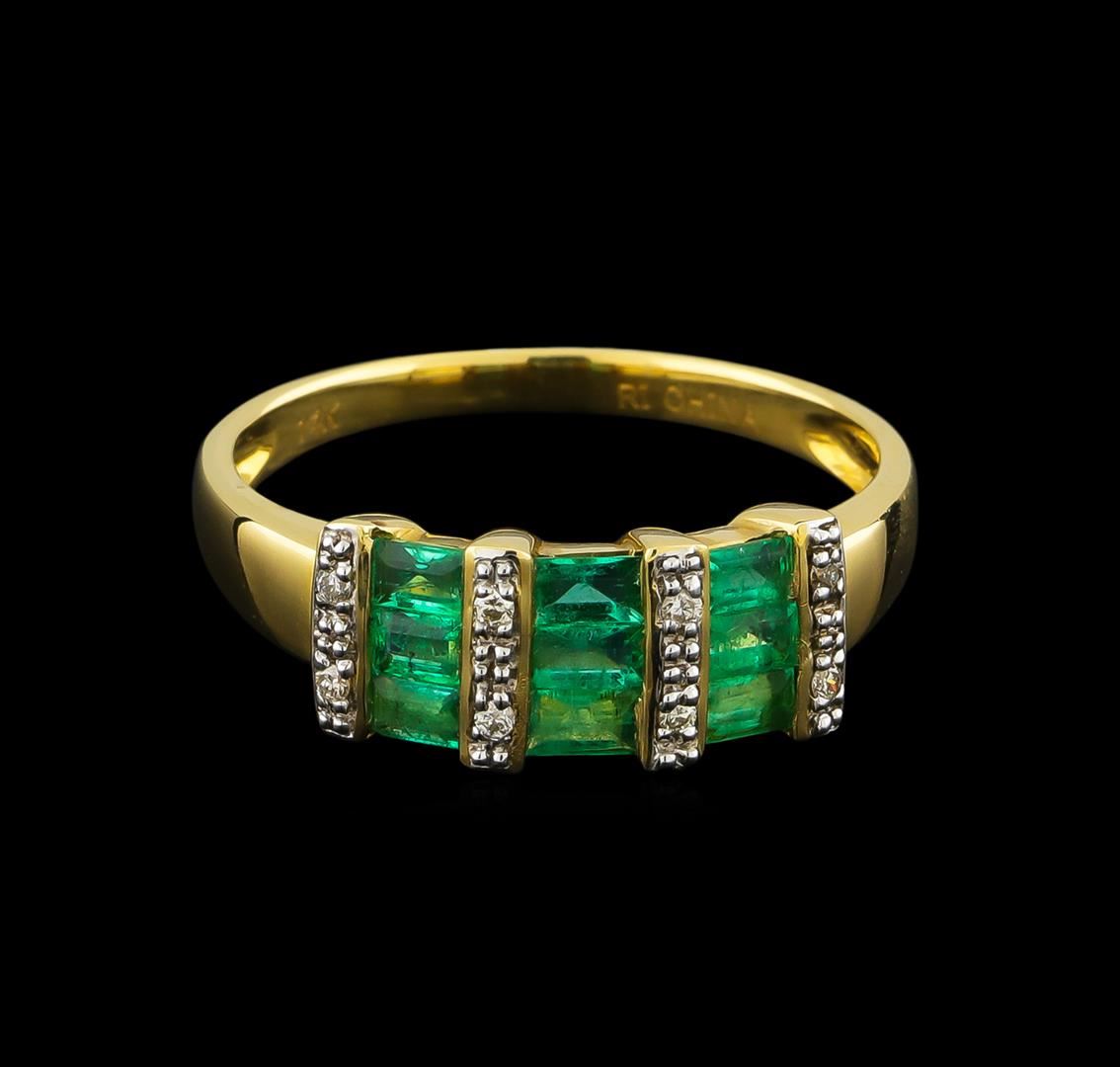 One ring featuring: 14KT yellow gold weighing 2.41 grams containing nine emeralds with a total weight of 0.84ct and eight round diamonds with a total weight of 0.06ct.