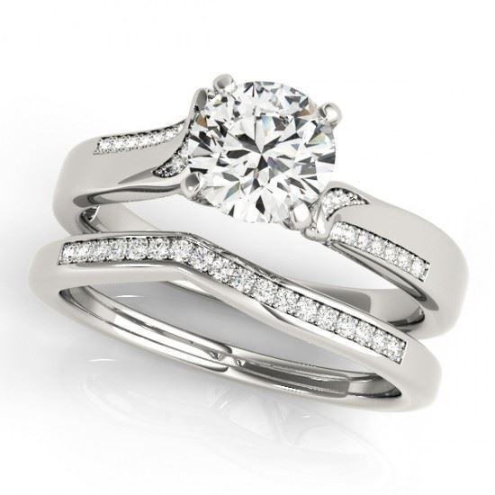 REF-154T5M -31934 ---- 0.85 CTW Certified VS/SI Diamond Solitaire 2Pc Wedding Set 14K White Gold ---- Luxury Designer Brand 2 Pc Set Appraised at $7,650 Certificate Number US31934 14k White gold, 2 Pc Set Size is 7, 2 Pc Set measuring approx. Uniform, weighing in total approx. 10.4 grams. Made in the USA and is stamped 14k, Main stone 0.53 carat total weight containing 1 pieces of H-J color with VS/SI quality Round shape cut Diamond , Stone #2 0.18 carat total weight containing 26 pieces of H-I color with VS/SI quality Round shape cut Diamond , Stone #3 0.14 carat total weight containing 18 pieces of G-H color with VS/SI quality Round shape cut Diamond