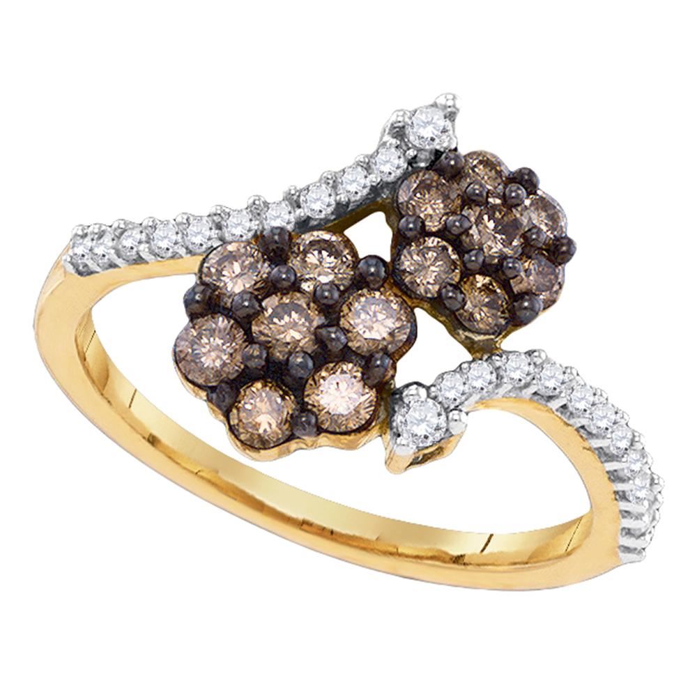 REF-34W4K- SKU: GD72930 ---- 0.85 CTW Cognac-brown Color Diamond Cluster Ring 10KT Yellow Gold