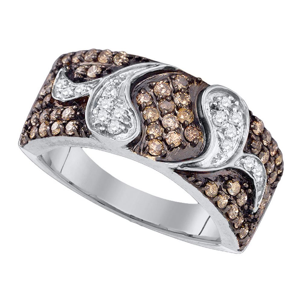 REF-49H5M- SKU: GD73028 ---- 0.85 CTW Cognac-brown Color Diamond Cocktail Ring 10KT White Gold