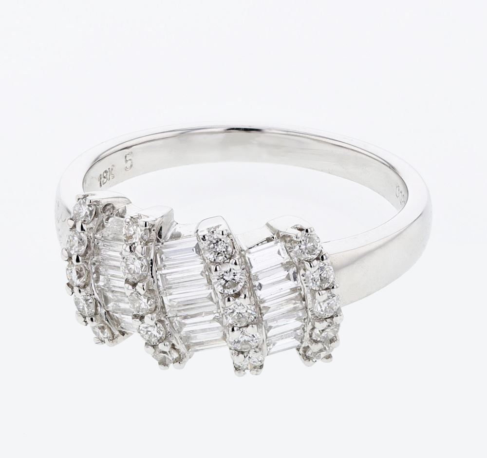 REF-93M2F - JF199506 ---- 0.85 CTW Baguette & White Round Diamond Ring 18K White Gold