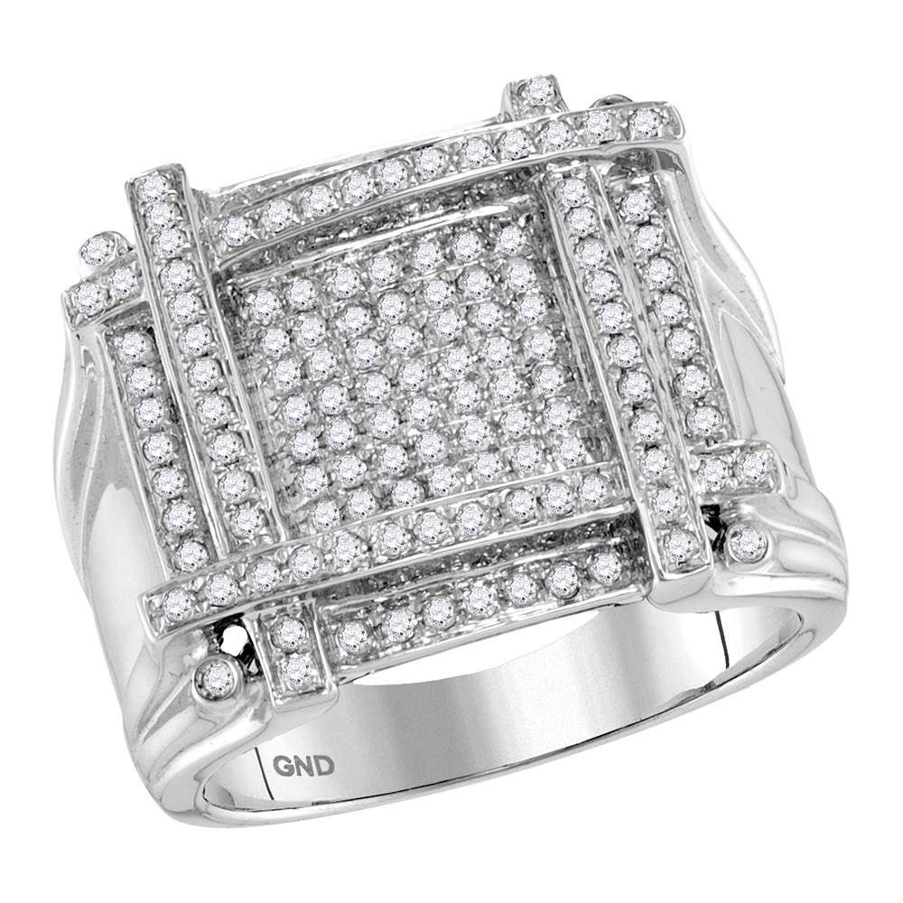 REF-104N9F- SKU: GD41087 ---- 0.85 CTW Mens Diamond Square Cluster Ring 10KT White Gold