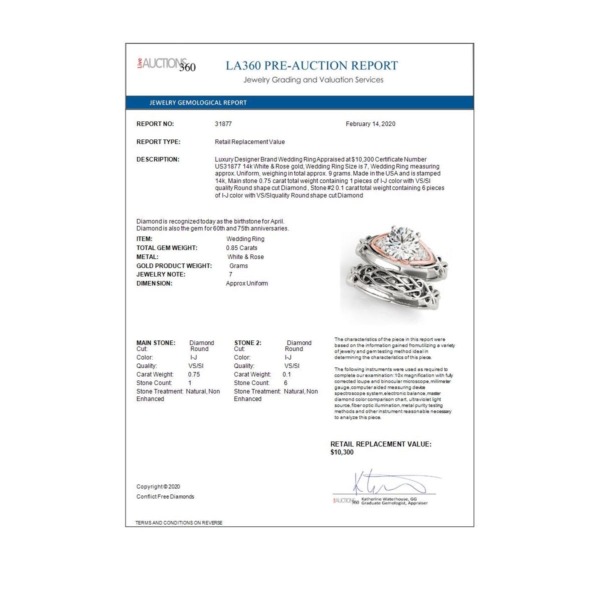 Total Gem weight: 0.85 carats