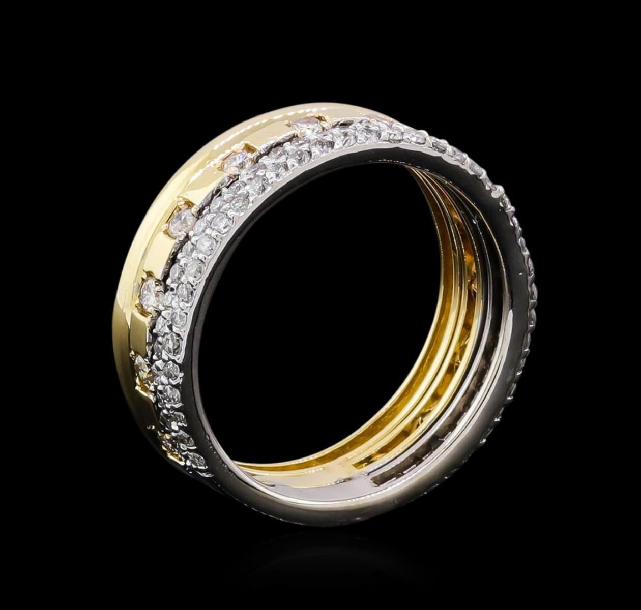 One ring featuring: 14KT white and yellow gold weighing 4.88 grams containing diamonds with a total weight of 0.85ct.