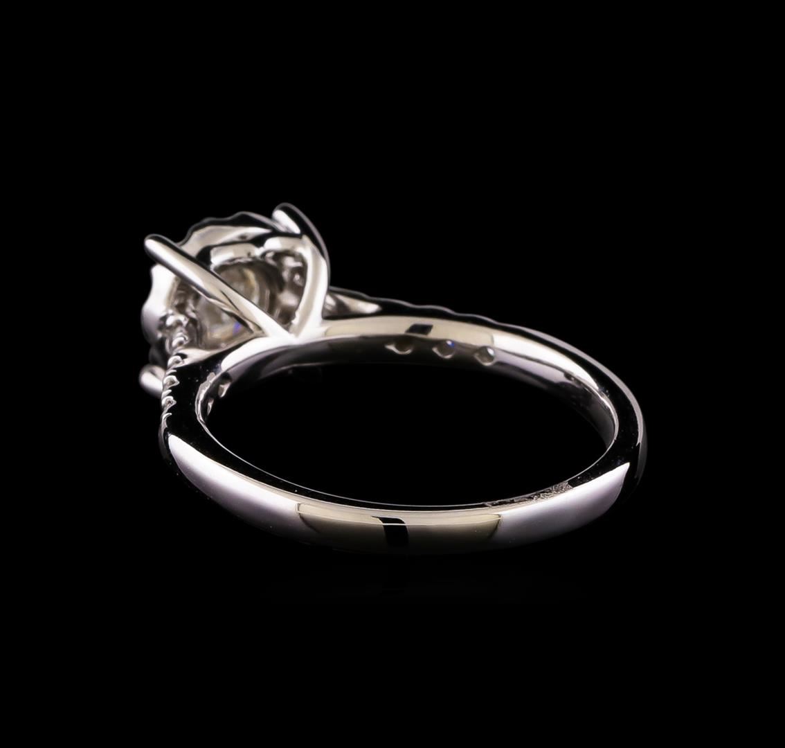 One electronically tested 14KT white gold lady's cast wedding ring with a halo with a bright polish finish. The featured lady's ring has a shank measuring 2.15 millimeters wide. Identified with markings of '585'. Condition is new, good workmanship. Containing: One prong set round brilliant cut diamond, measuring 5.15 - 5.09 x 3.12mm (depth est.) approximate weight of 0.50ct. Graded in the setting. Clarity SI-2. Color: G - H Cut Very Good Twenty prong set round brilliant cut diamonds, measuring 1.70 - 1.65 x 1.02mm (depth est.) approximate total weight of 20 Stones = 0.35ct. Graded in the setting. Clarity SI-1 to SI-2. Color: G - I Cut Good. Total Weight of Diamonds 0.85ct.. Total Weight of Ring 3.30gm. GAS Appraised at $5,140.00.