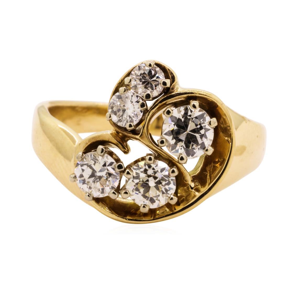 One lady's freeform motif ring featuring: 14KT yellow gold weighing 4.7 grams containing diamonds weighing 0.85ctw.