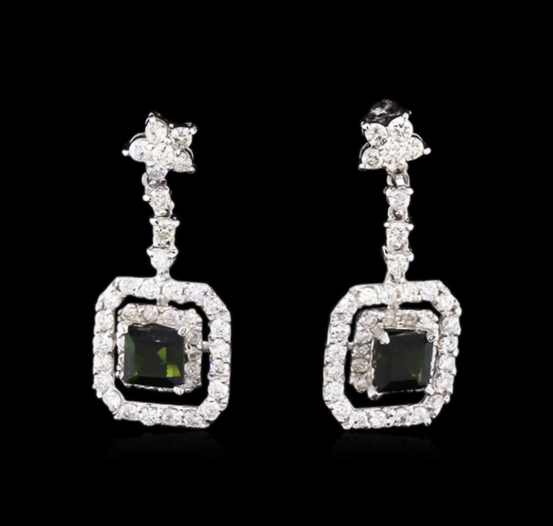 One pair of earrings featuring: 14KT white gold weighing 3.23 grams containing 2 green tourmaline with a total weight of 0.85ct and diamonds with a total weight of 0.83ct.