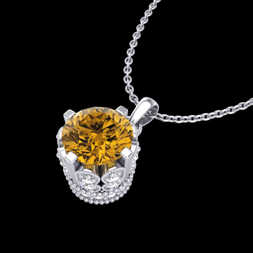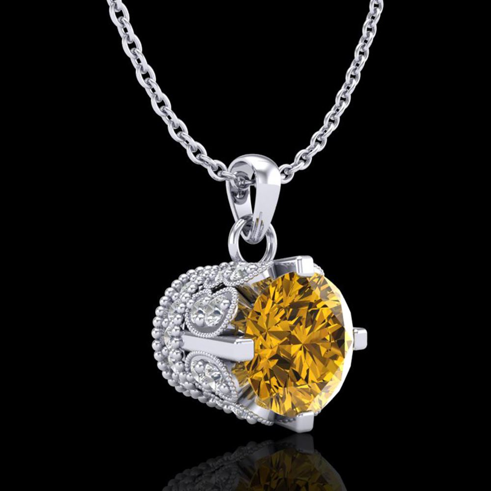 REF-109R3K - SKU: 37371 ---- 0.85 ctw Intense Fancy Yellow Diamond Art Deco Necklace 18k White Gold