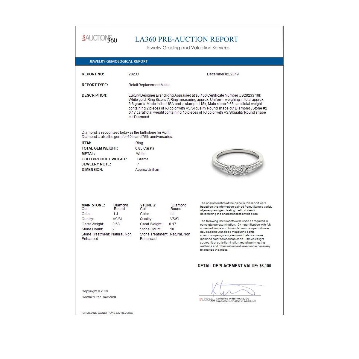 Total Gem weight: 0.85 carats