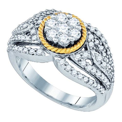 REF-82K4N ---- 0.85CT Diamond Flower 10KT Ring 2Tone Gold - SKU: GD 79336
