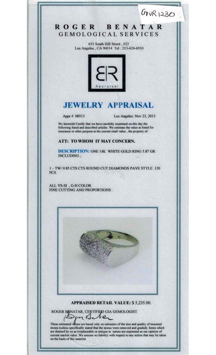 14K WHITE GOLD NATURAL DIAMOND RING :5.87GRAM /DIAMOND RD :0.85CT/#GVR1230